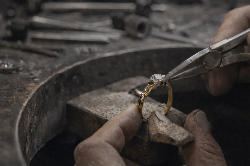 Professional jewellery repairs including ring resizing, stone replacement, and chain repairs.