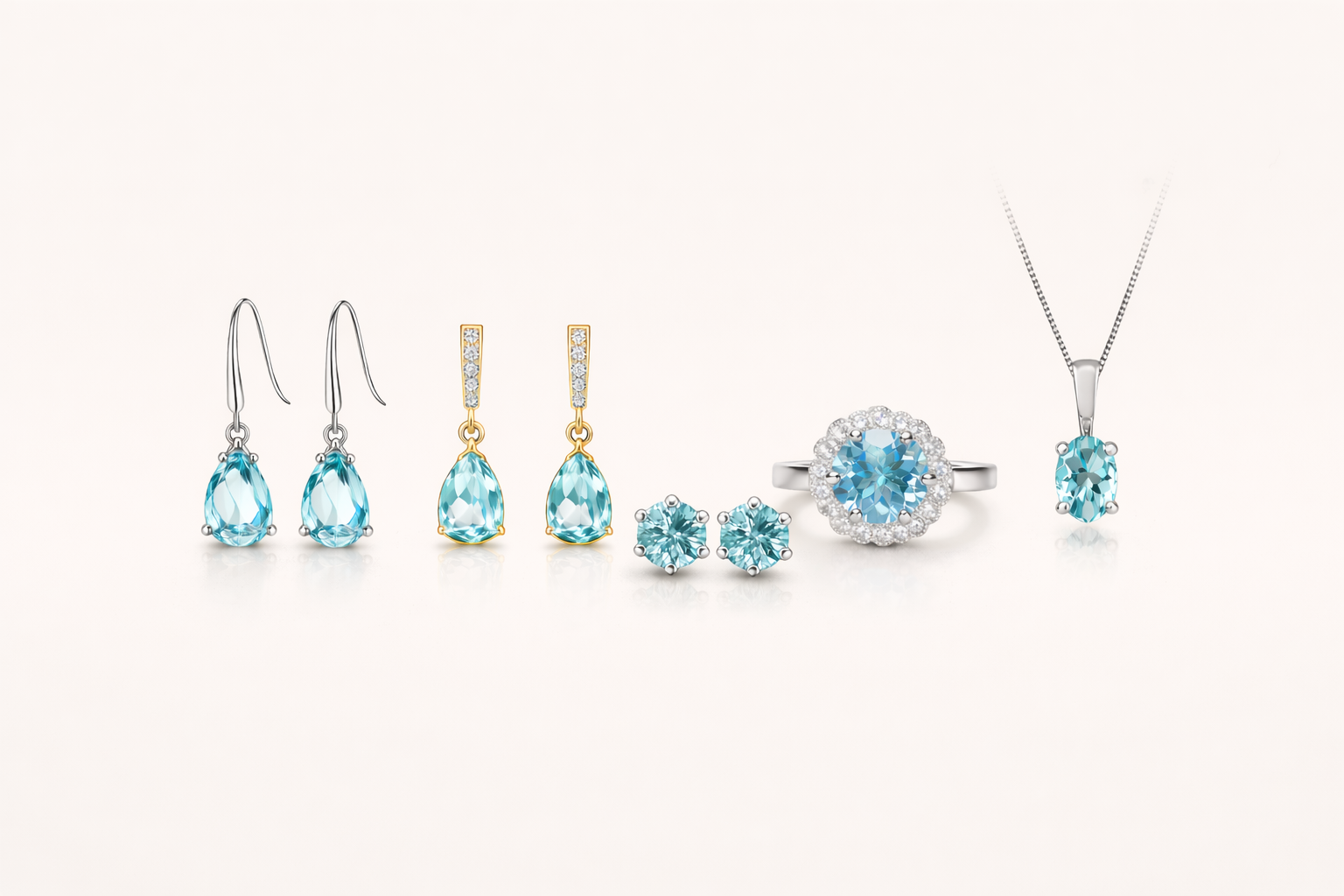 Discover the serene beauty of aquamarine, the birthstone of March. Each piece captures the tranquil essence of ocean waters.