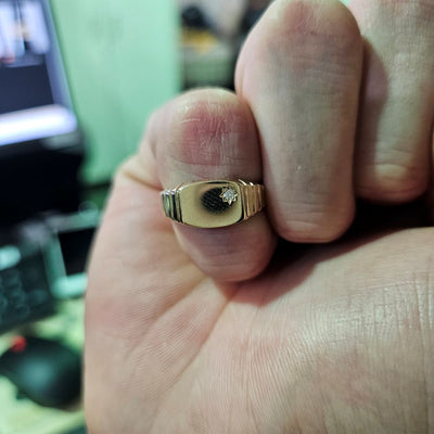 9ct gold childs signet ring 3.87g diamond set