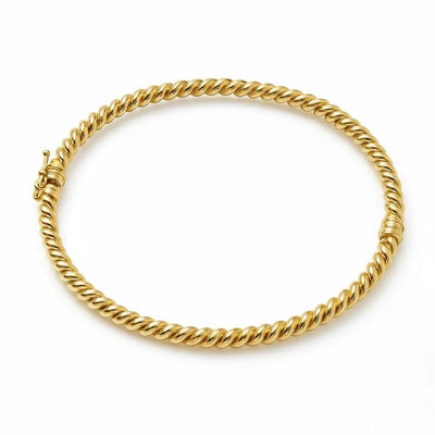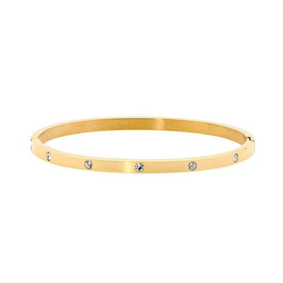 Ellani Stainless Steel Gold-Plated Hinge Bangle with White CZ Accents (4mm)