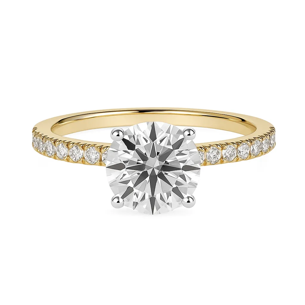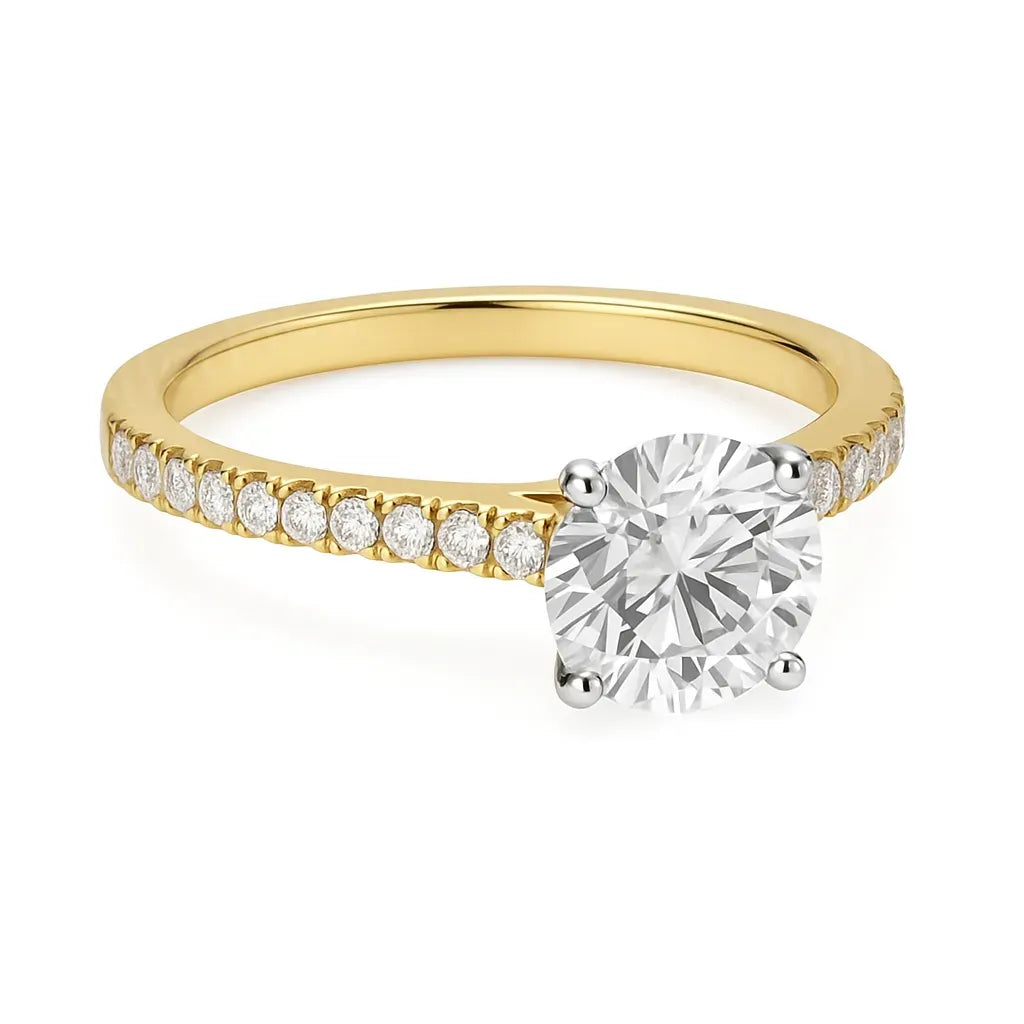 A timeless statement of elegance, this handcrafted ring features a stunning 1.2ct lab-grown solitaire diamond set at its centre, designed to capture light from every angle. The centre stone is beautifully complemented by 12 carefully set shoulder diamonds, adding refined brilliance and enhancing the ring’s classic silhouette.