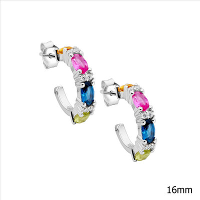 Sterling Silver Hoop Earrings with Multi-Colour Oval & White Round Cubic Zirconia