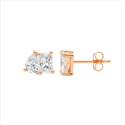 SS emerald & pear cut wh cz stud earrings w/gold plating
