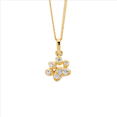 Sterling Silver Paw Pendant with White Cubic Zirconia and Gold Plating