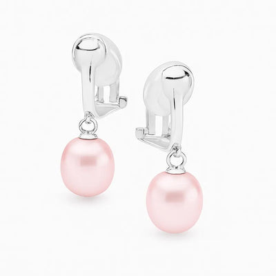 Ikecho Sterling Silver Pink Drop Freshwater Pearl Clip-On Earrings (7.5–8mm)