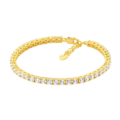 Stainless Steel 3.5mm White CZ Tennis Bracelet with Gold Plating and Extension Chain