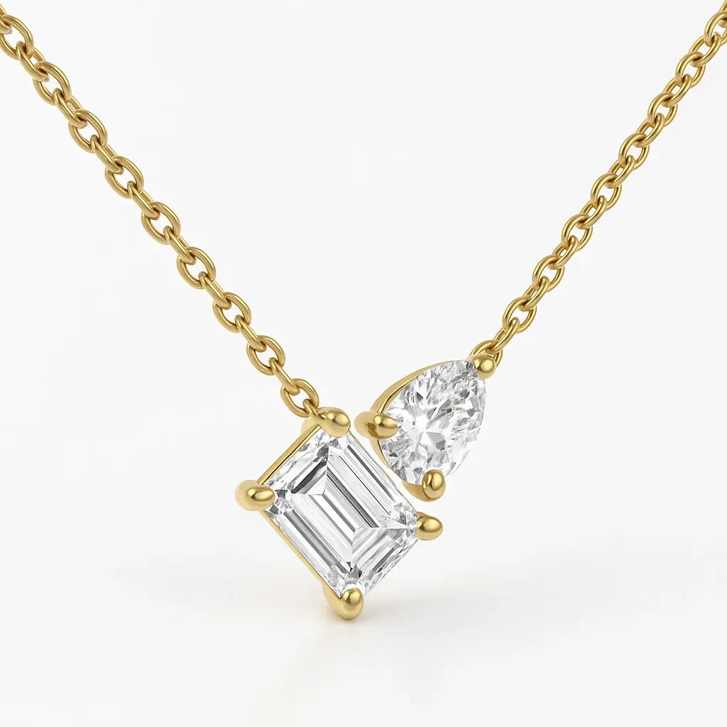 18ct yellow gold Toi et Moi necklace, featuring two stunning lab-grown diamonds totaling 2.2 carats with exceptional F colour and VS2 clarity. Comes with a 45cm chain, offering a versatile length that complements any neckline.