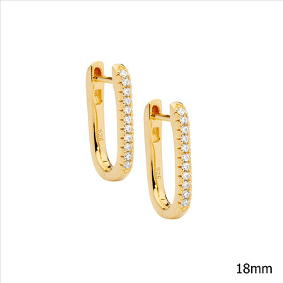 Sterling Silver White Cubic Zirconia 18mm Oval Hoop Earrings with Gold Plating