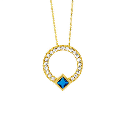 Gold Plated Open Circle Pendant with Blue Cubic Zirconia