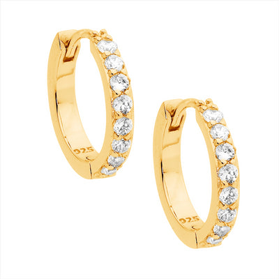 Double Wave Cubic Zirconia and Gold Hoop Earrings