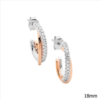 Cross Over Stainless Steel and Cubic Zirconia Earrings