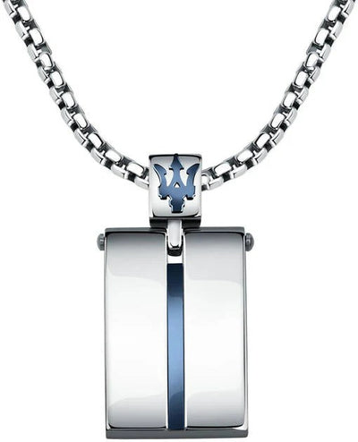 Maserati Pendant in Stainless Steel and Blue with 60cm Chain