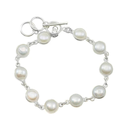 Sterling Silver White Mabe Pearl Small Bracelet (19.5cm)