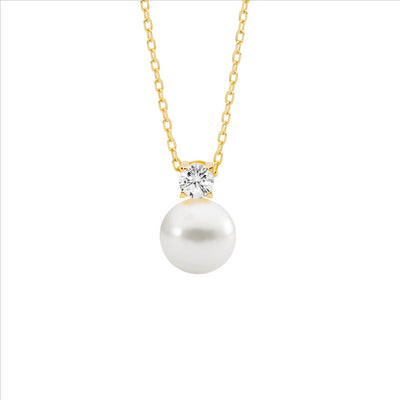 Sterling Silver 4mm Claw Set White CZ & 9mm Freshwater Pearl Pendant with Gold Plating