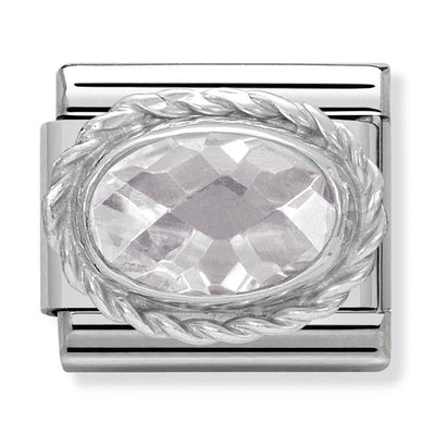 Silver with Pink and Blue Cubic Zirconia Oval Link