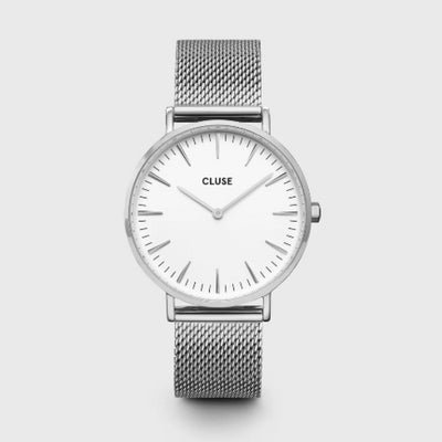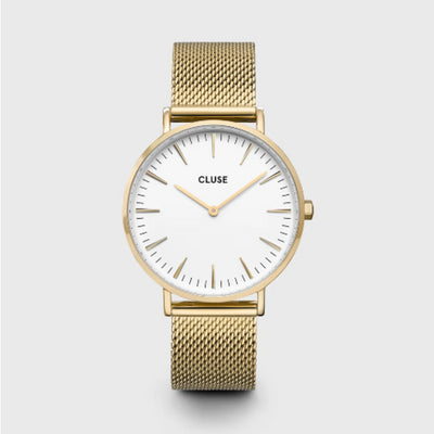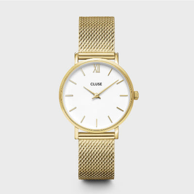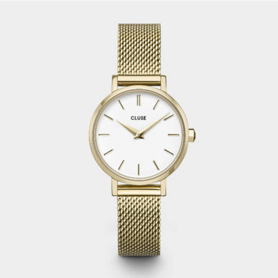 Boho Chic Petite Watch Mesh, White, Gold Colour