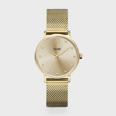 Minuit Watch Mesh Crystals, Full Gold Colour
