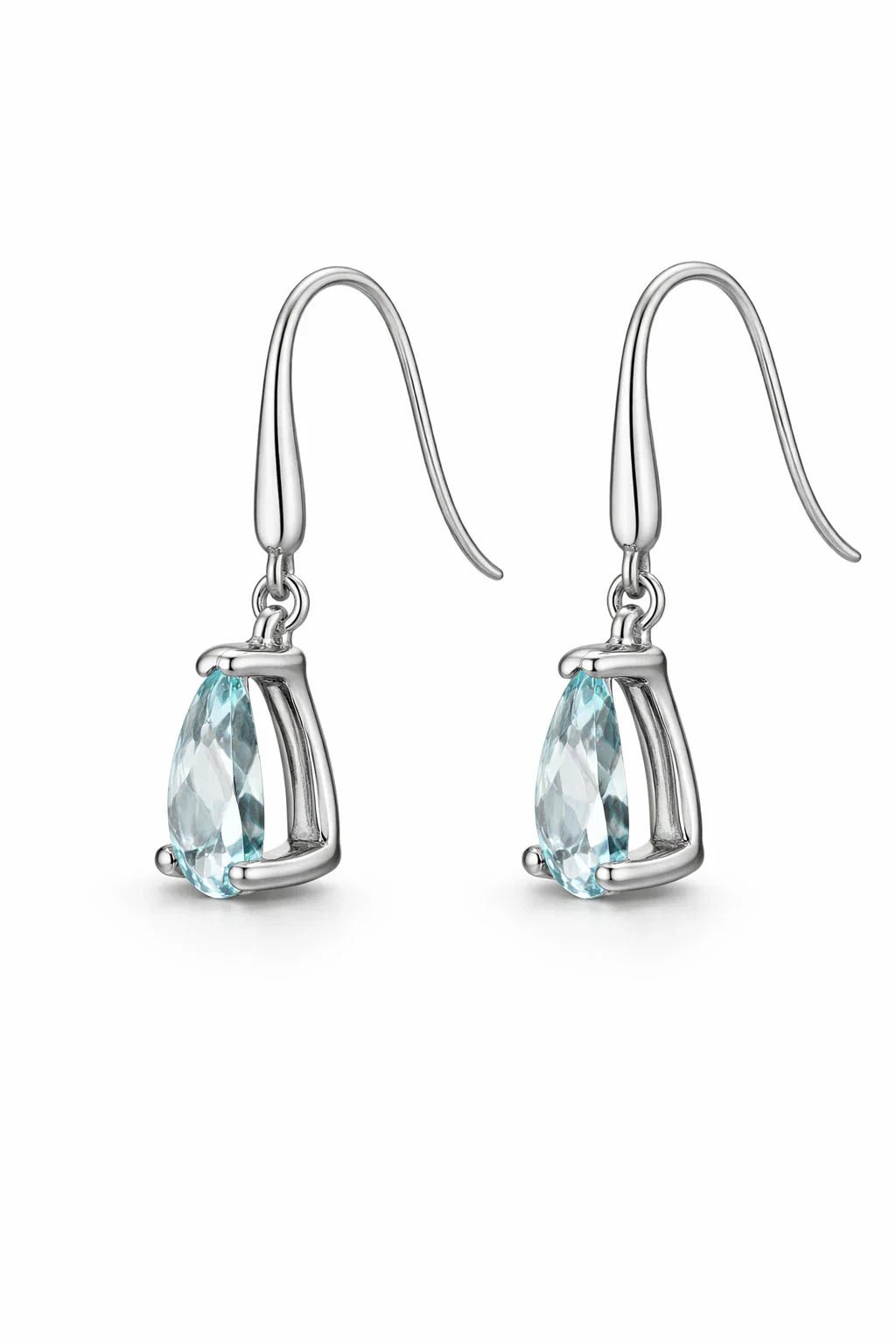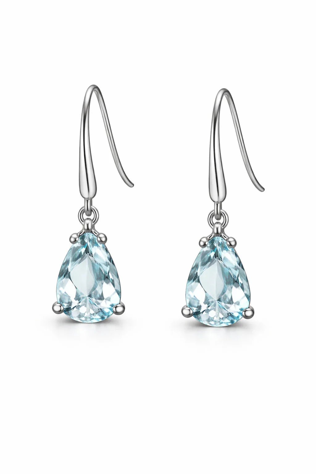 Elegant pear-cut aquamarine earrings set in polished 9ct white gold with a classic shepherd hook design. The soft blue aquamarines catch the light beautifully, creating a refined and timeless drop earring perfect for everyday wear or special occasions.
